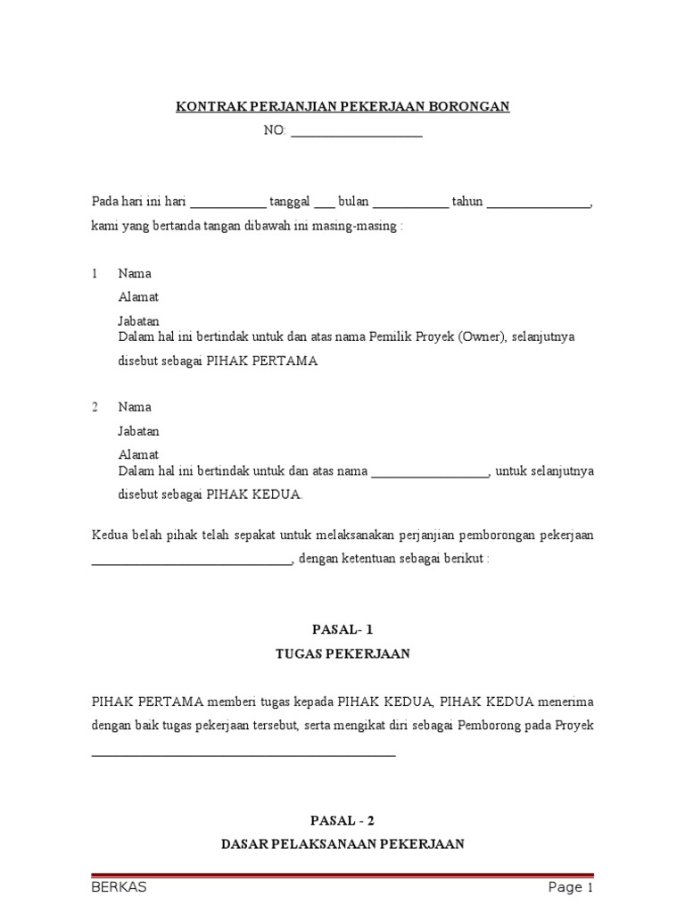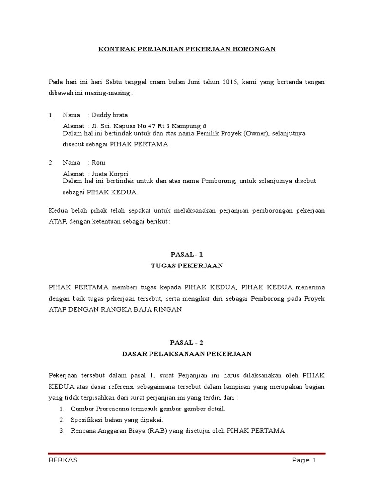 Contoh Kontrak Kerja Antara Pemborong Dengan