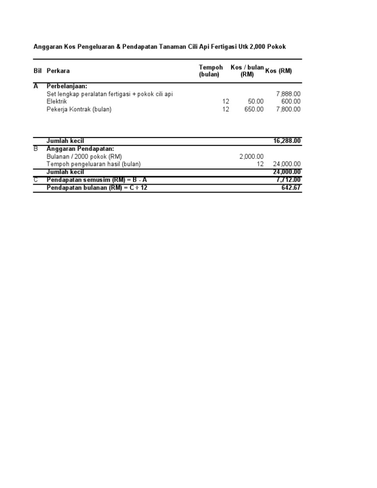 58088321 Anggaran Kos An Cili Api Fertigasi Xls
