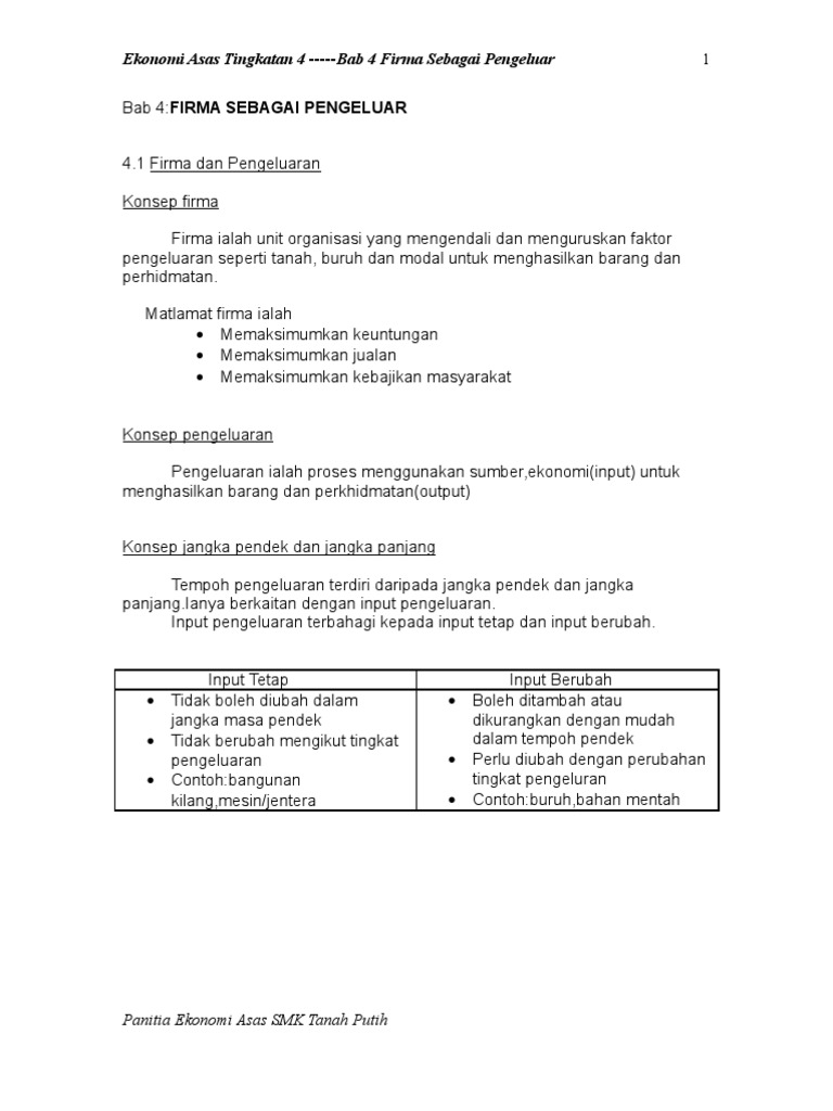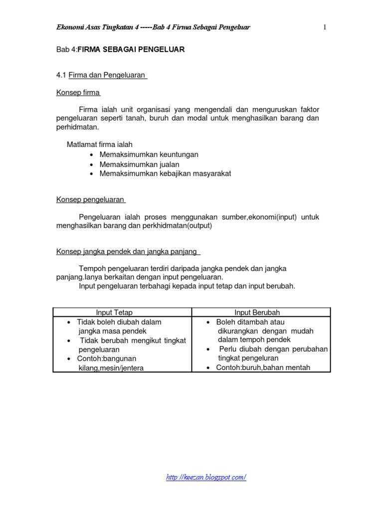 Ekonomi Asas Tingkatan 4 Unit 4 Firma Sebagai Pengeluar