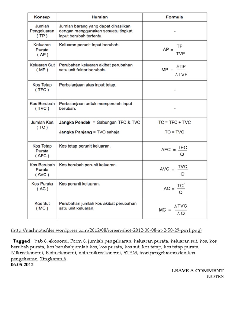 My Ekonomi Bab 5 Teori Pengeluaran Dan Kos