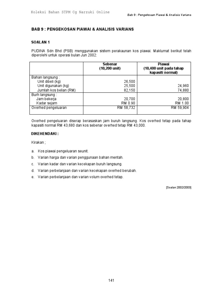 Doc Latihan Kos Pengeluaran Suraya Daud Academia Edu