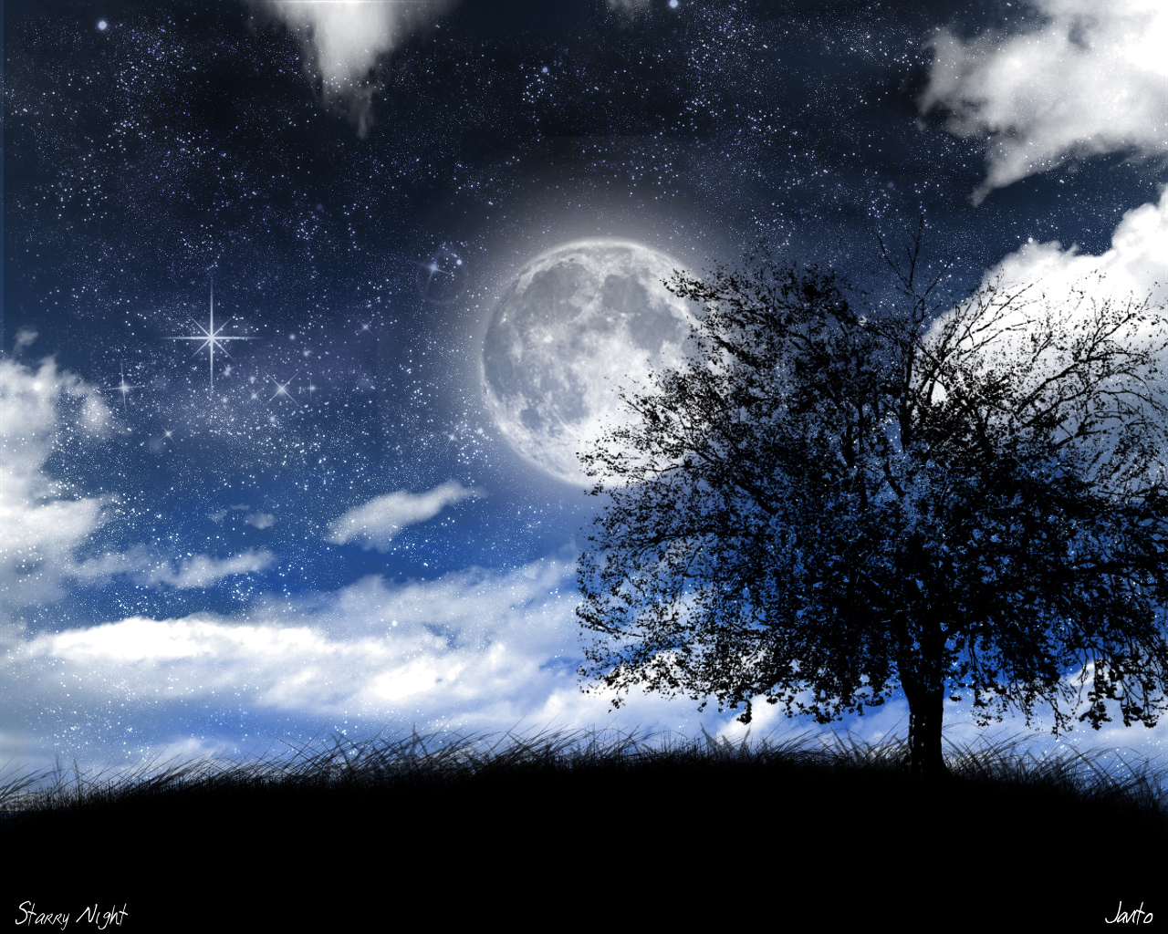 Gambar Pemandangan Pohon Awan Langit Malam Bintang Suasana