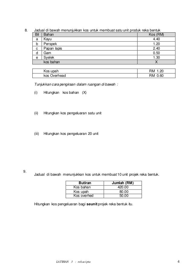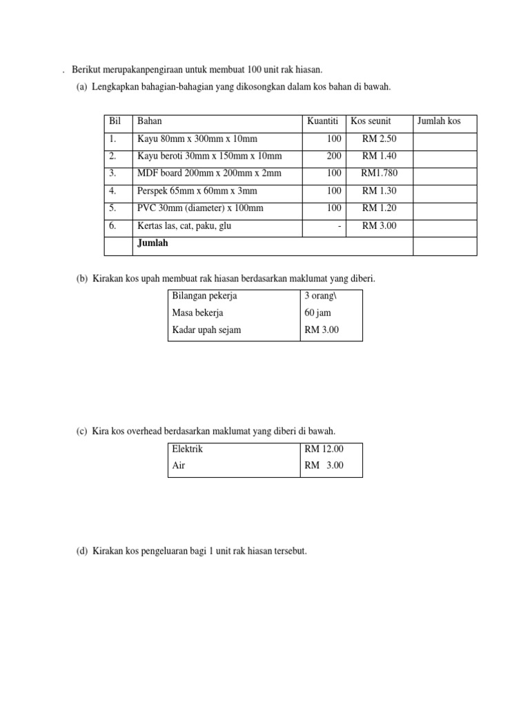 Doc Latihan Kos Pengeluaran Suraya Daud Academia Edu