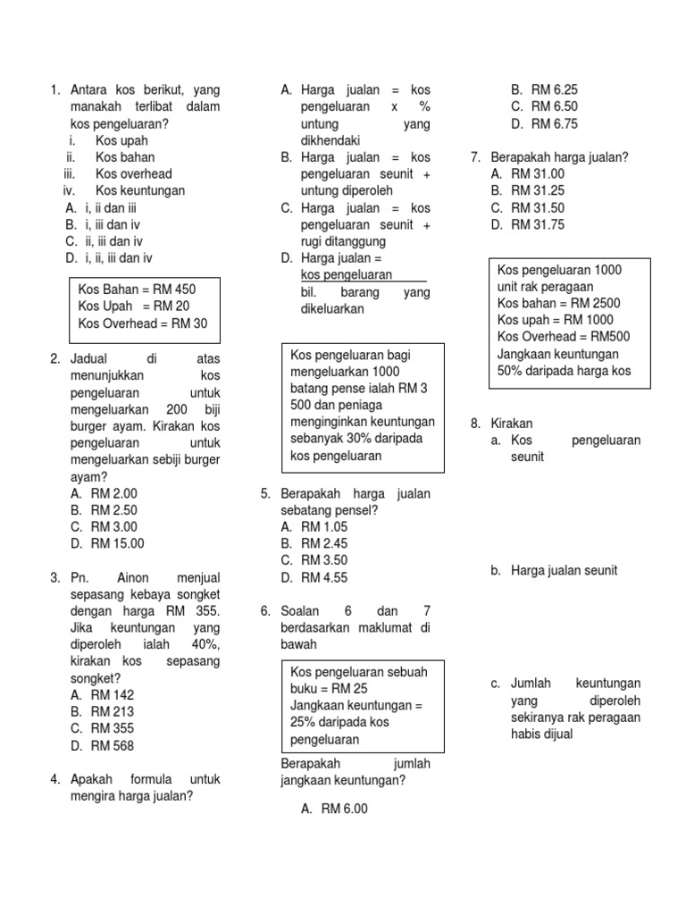 Soalan Pengiraan Kos