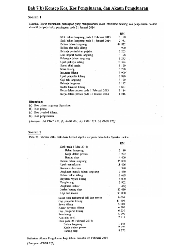 Latihan Pengiraan Kos Pengeluaran