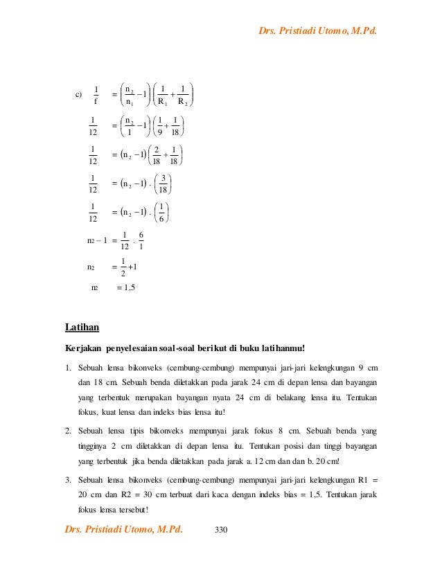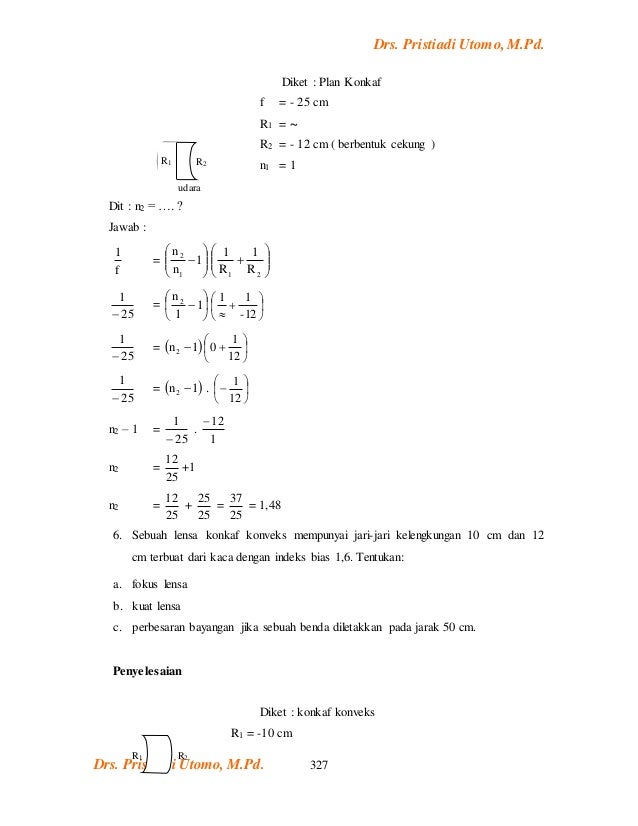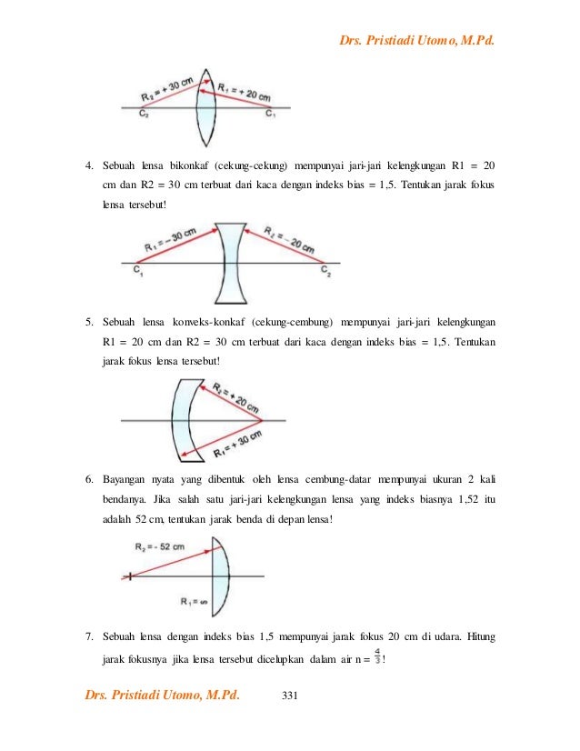 Sebuah Lensa Bikonveks Mempunyai Indeks Bias 1 5 Dan Jari Jari