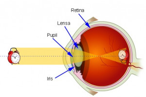 Untuk melihat objek yang jauh cahaya datang dari jauh lensa mata akan menipis. Lensa kamera punya perbandingan ukuran yang sama dengan mata manusia. Lensa dibungkus suatu kapsul yang merupakan membran bening yang menutupi lensa dengan erat tebal pada permukaan anterior. Sedangkan untuk melihat objek yang dekat cahaya datang dari dekat lensa mata akan menebal.