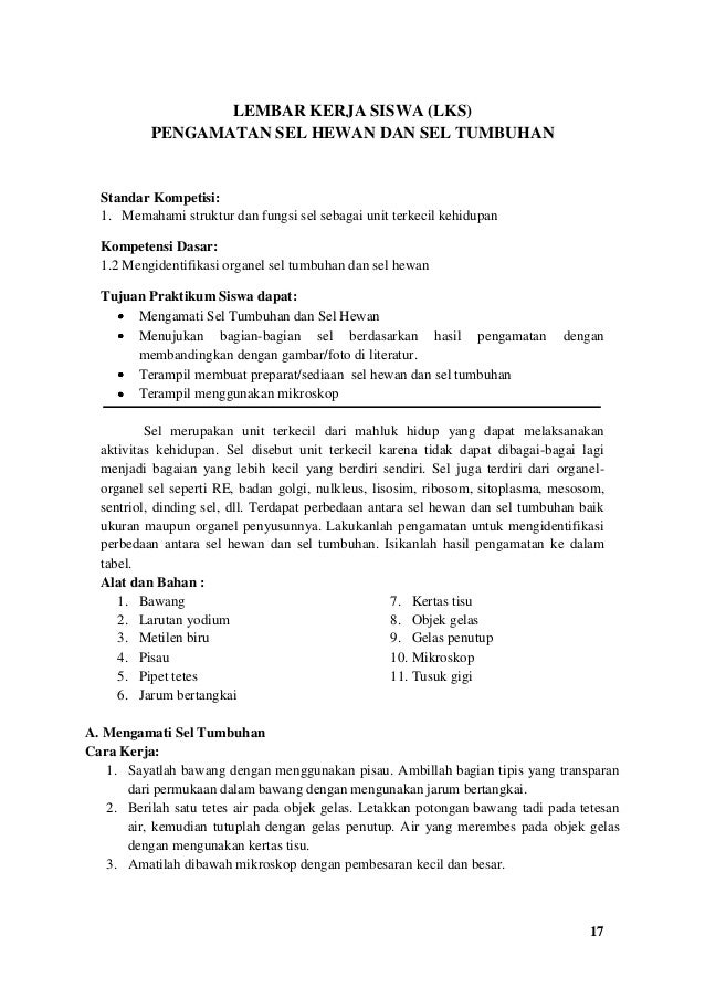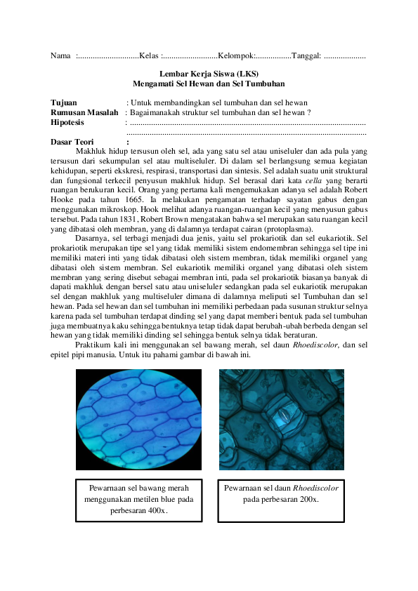 Pdf Lks Tentang Sel Hewan Dan Tumbuhan Pisca Hana Marsenda