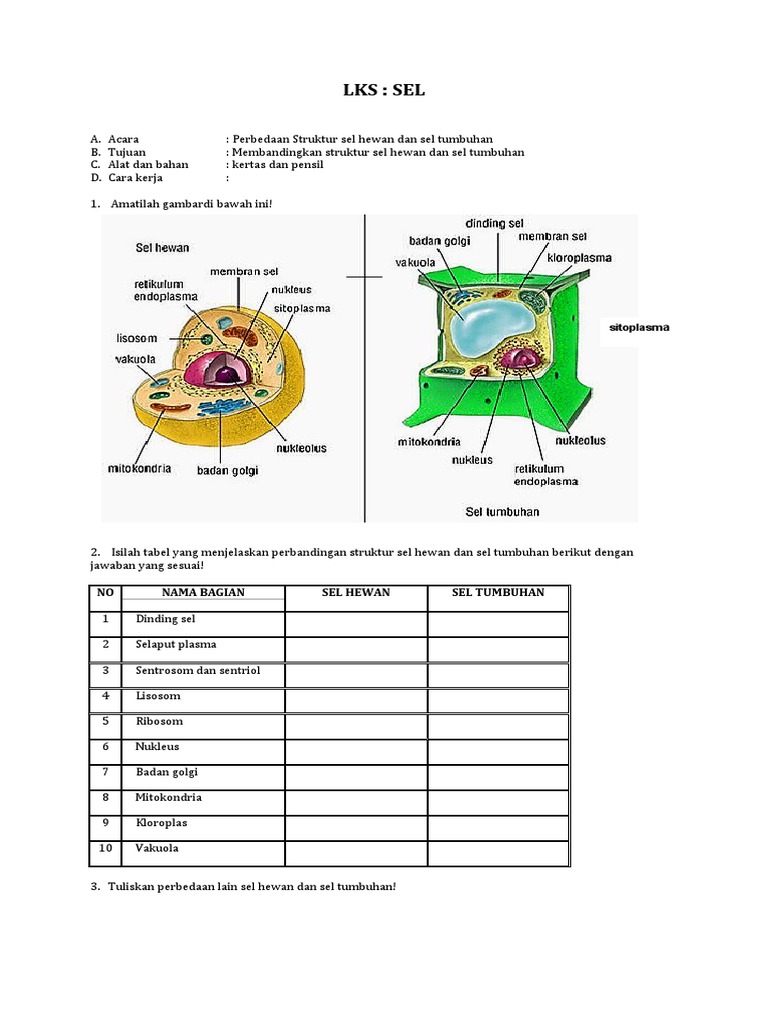 Lks Membandingkan Sel Tumbuhan Dan Sel Hewan