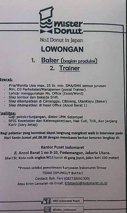 Lowongan Kerja Mister Donut Lowongan Kerja Indonesia