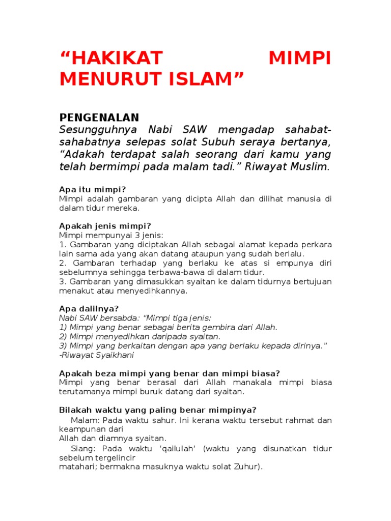 Mimpi Menjelang Subuh Konsultasi Agama Dan Tanya Jawab