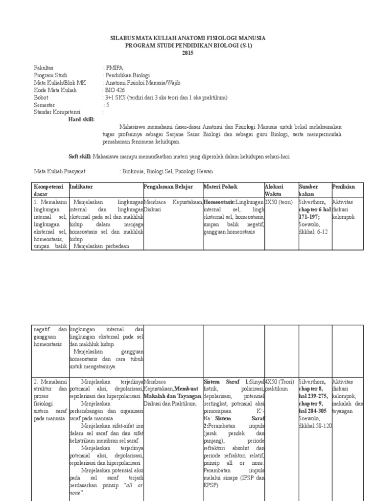 Http Staffnew Uny Ac Id Upload 198208262008121001 Pendidikan Silabus Mata Kuliah Anatomi Pdf