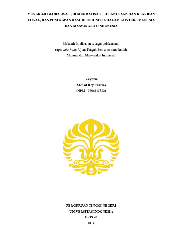 Pdf Mengkaji Globalisasi Demokratisasi Kebangsaan Dan Kearifan