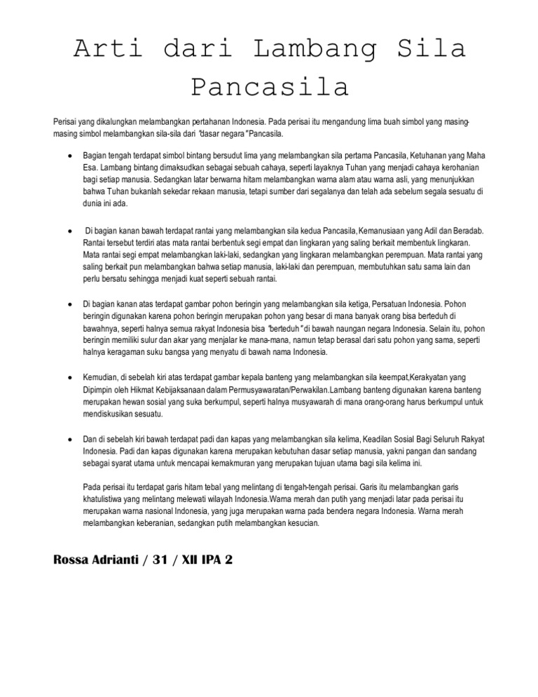 Arti Dari Lambang 5 Sila Dalam Pancasila