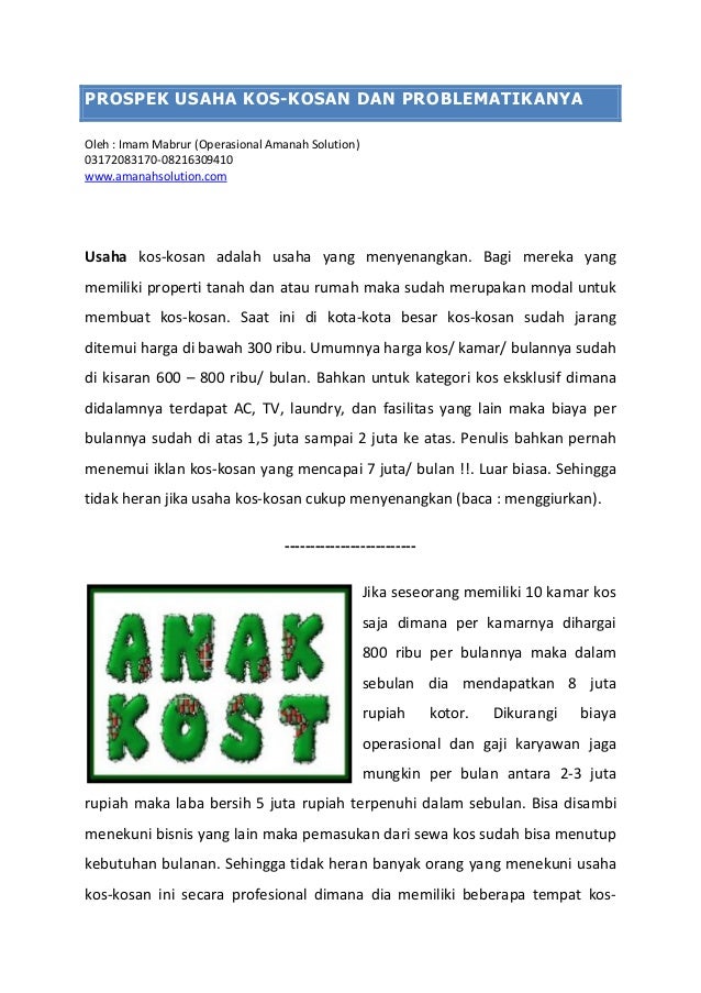 Peluang Bisnis Kost Kostan Penghasilan Ngalir Terus