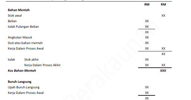 Format Penyata Kos Pengeluaran