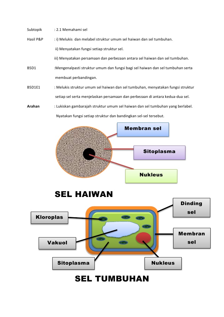 Ting 1 Sains Sel Haiwan Dan Sel Tumbuhan Lessons Tes Teach