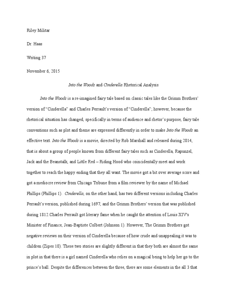 Into The Woods And Cinderella Rhetorical Analysis Cinderella