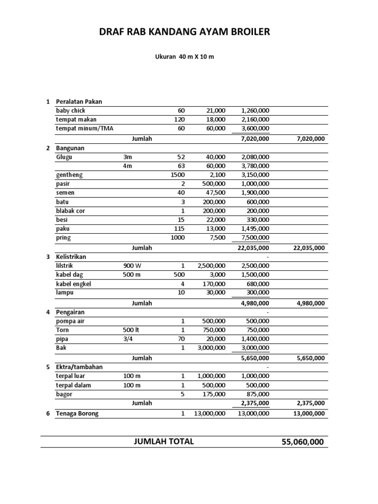 Rencana Anggaran Biyaya Rab Pembangunan Kandang Closed House