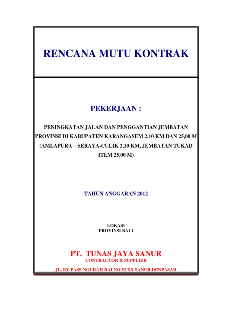 Rencana Mutu Kontrak Pekerjaan Jalan