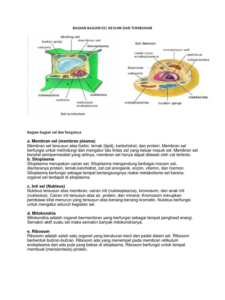 Bagian Sel Hewan Dan Sel Tumbuhan Berbagai Bagian Penting