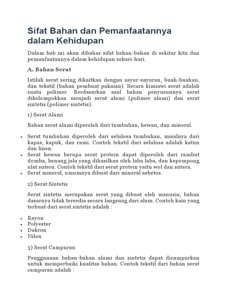 Ilmu Pengetahuan Alam Sifat Bahan Pemanfaatannya Dalam Kehidupan
