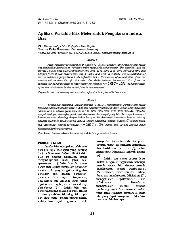 Pdf Aplikasi Portable Brix Meter Untuk Pengukuran Indeks Bias