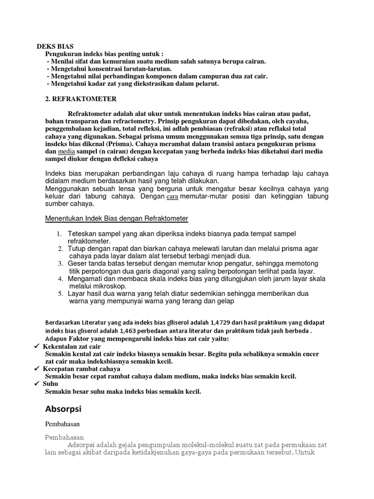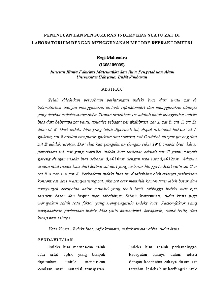 Indeks Bias Metode Refraktometri Pdf Document