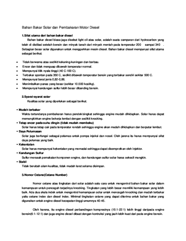 Doc Bahan Bakar Solar Dan Pembakaran Motor Diesel Tarip Sumito