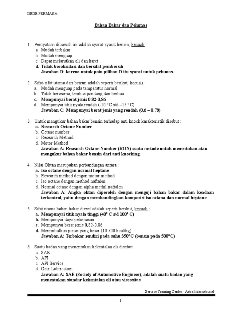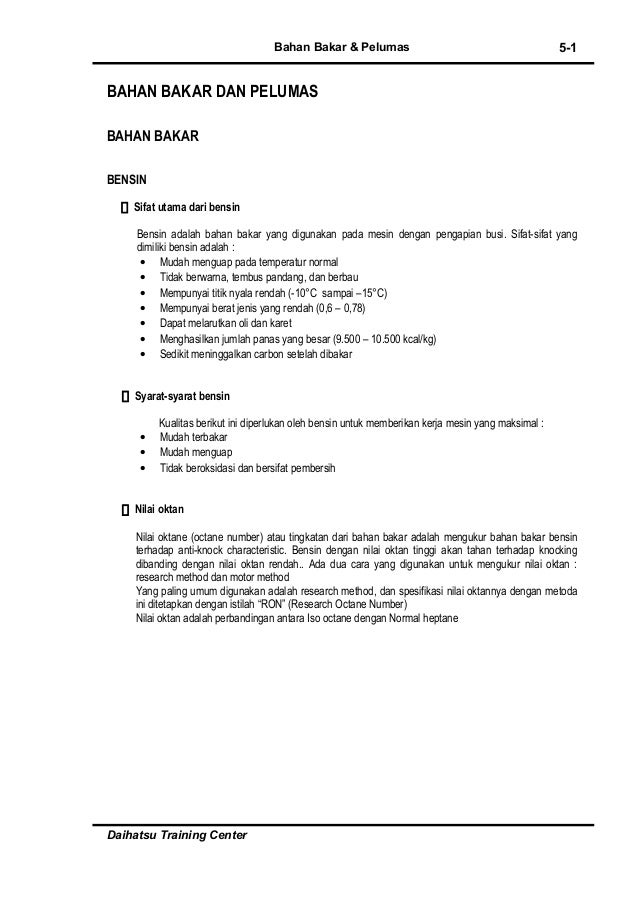 Bahan Bakar Pelumas Daihatsu Training Center