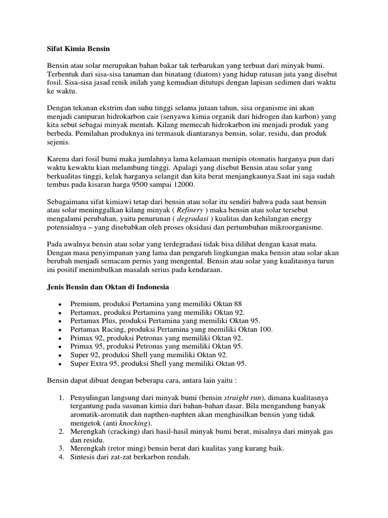 Sifat Karakter Dari Bensin Dan Solar Kepanen Com