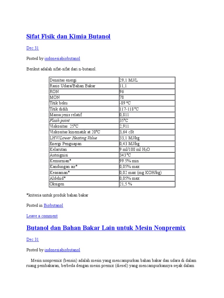 Sifat Utama Bb Bensin Solar Dan Gas