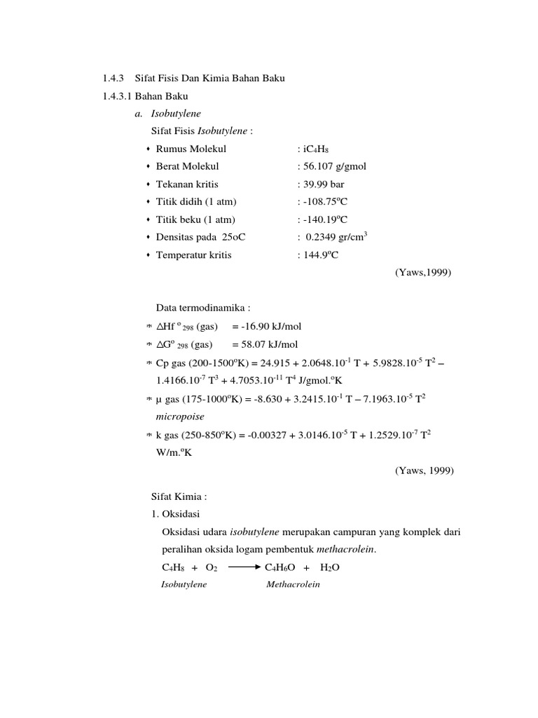 Iii Spesifikasi Bahan Baku Dan Produk Berikut Sifat