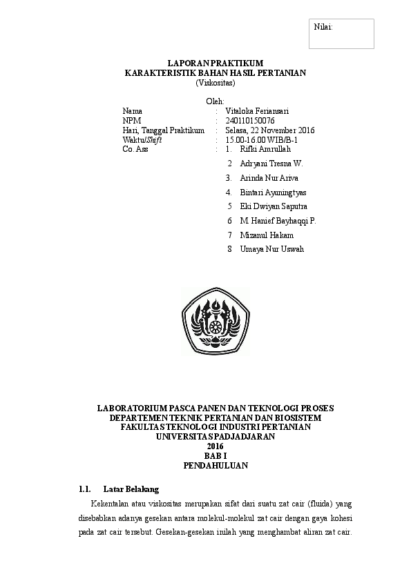Doc Karakteristik Bahan Hasil Pertanian Vitaloka Feriansari