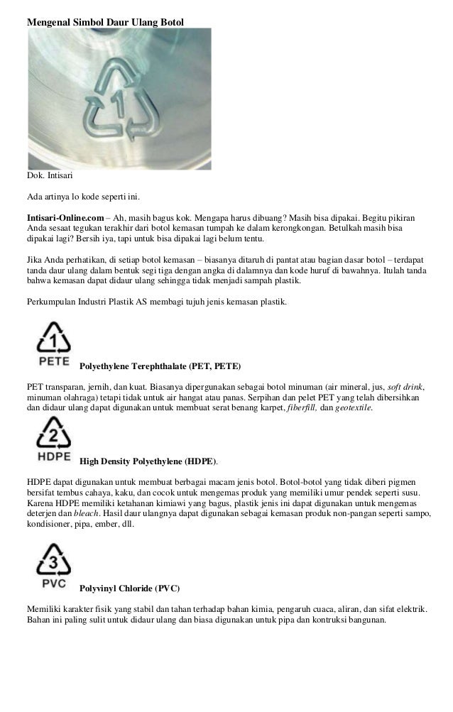 Daur Ulang Mengenal Simbol Daur Ulang Botol