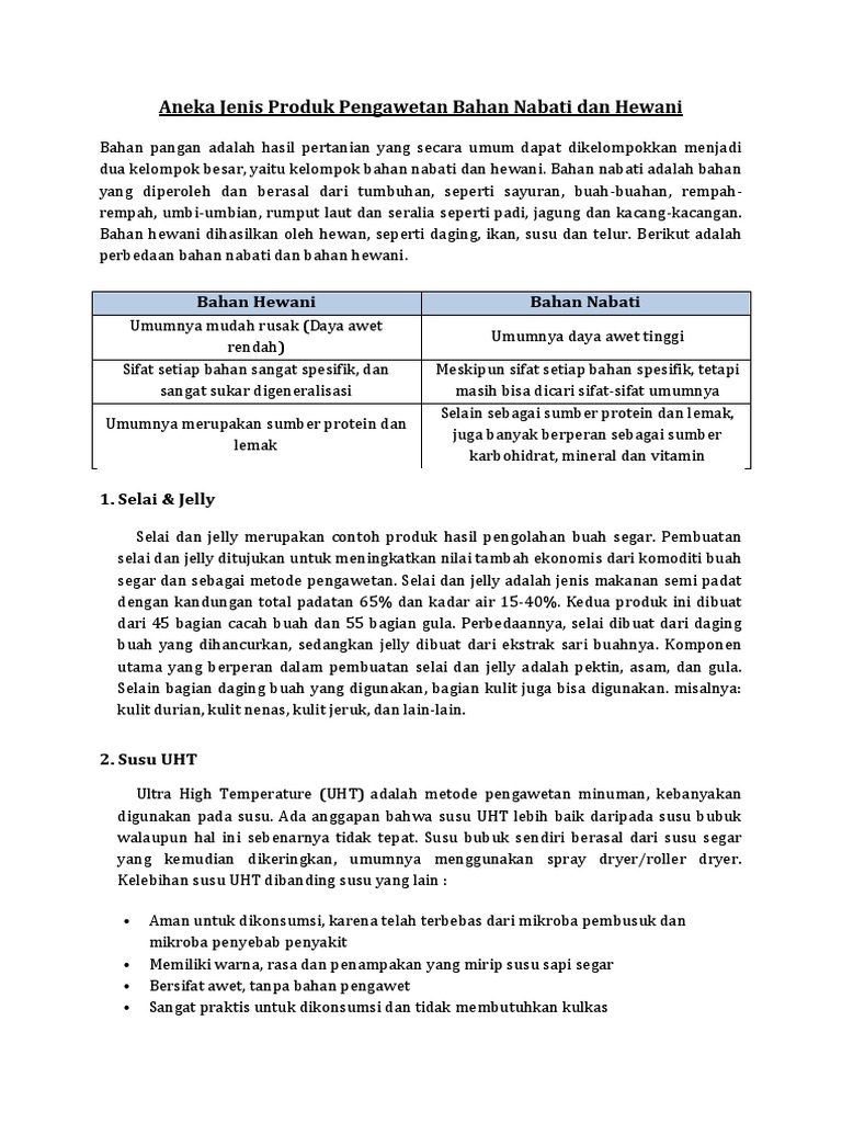Aneka Jenis Produk Pengawetan Bahan Nabati Dan Hewani