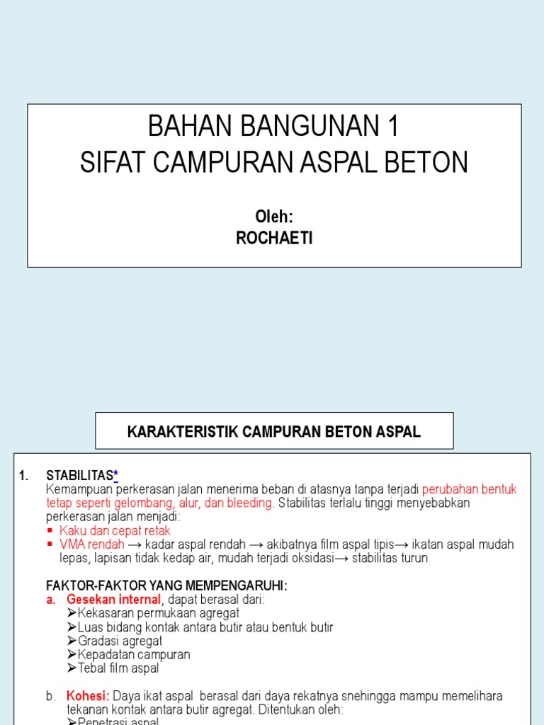 Bahan Bangunan 1 Sifat Campuran Aspal Beton Oleh Rochaeti