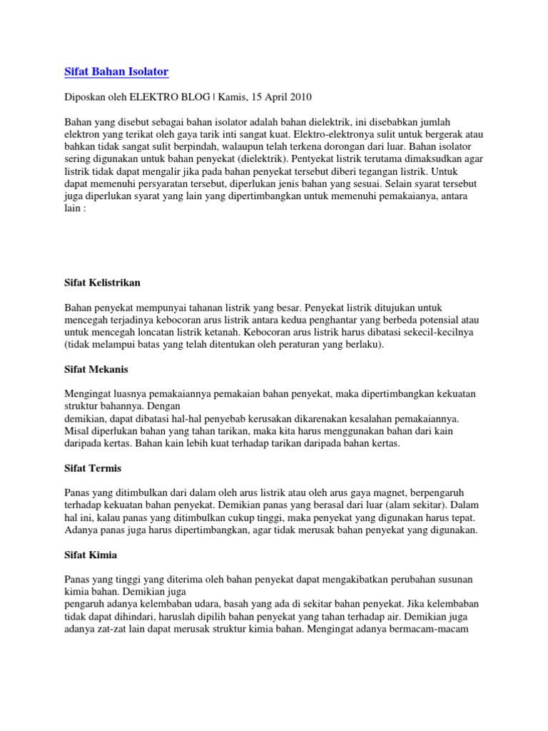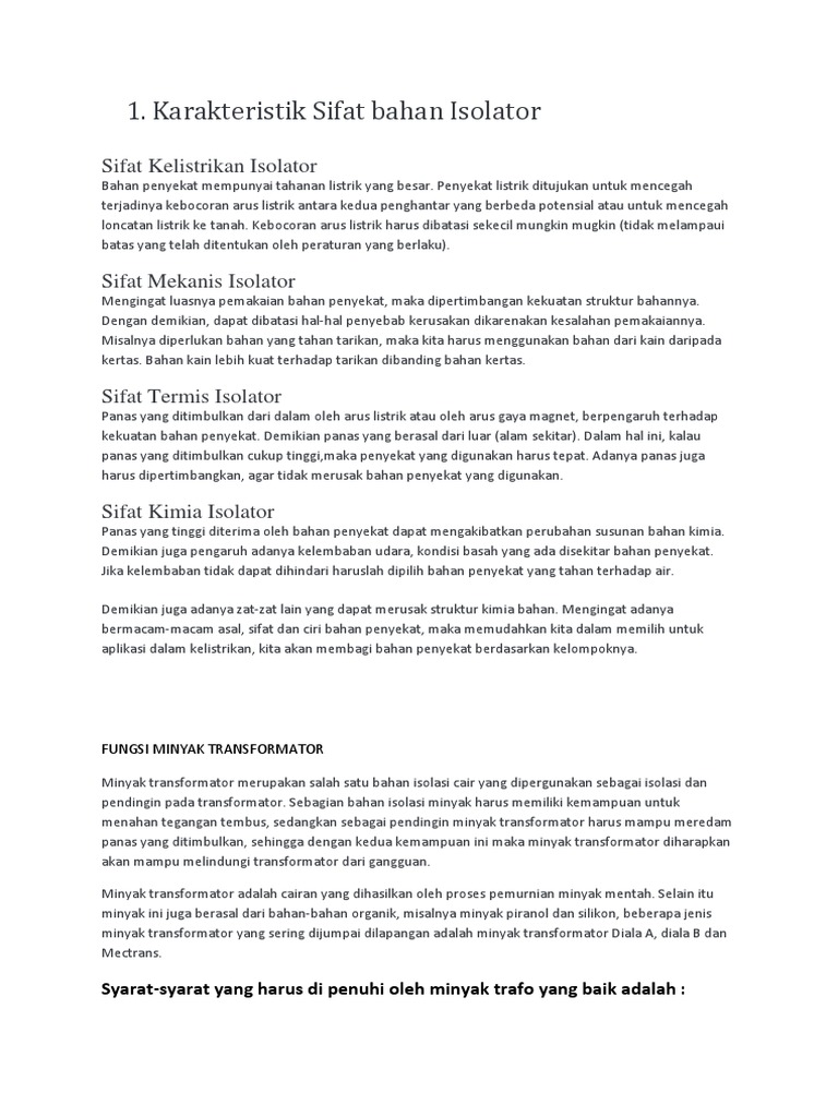 Karakteristik Sifat Bahan Isolator