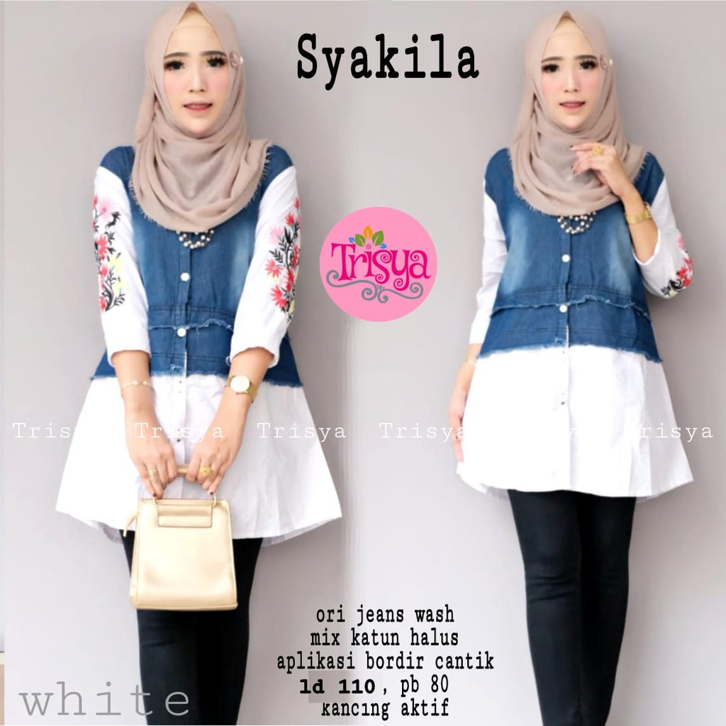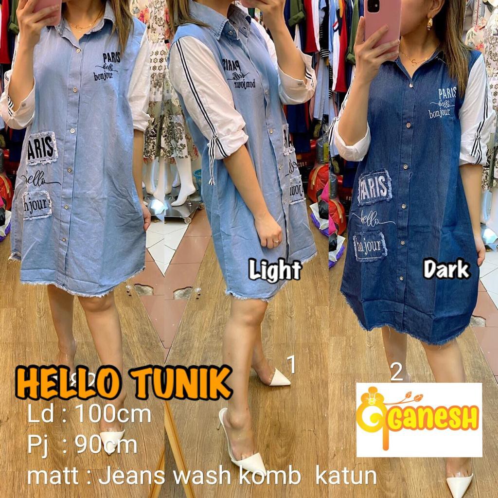Hello Tunik Jeans Bahan Jeans Wash Mix Katun Shopee Indonesia