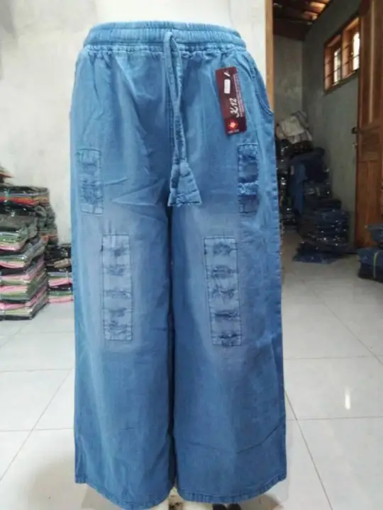 Gfs Celana Kulot Bahan Jeans Wash Model Sobek Terbaru Lazada