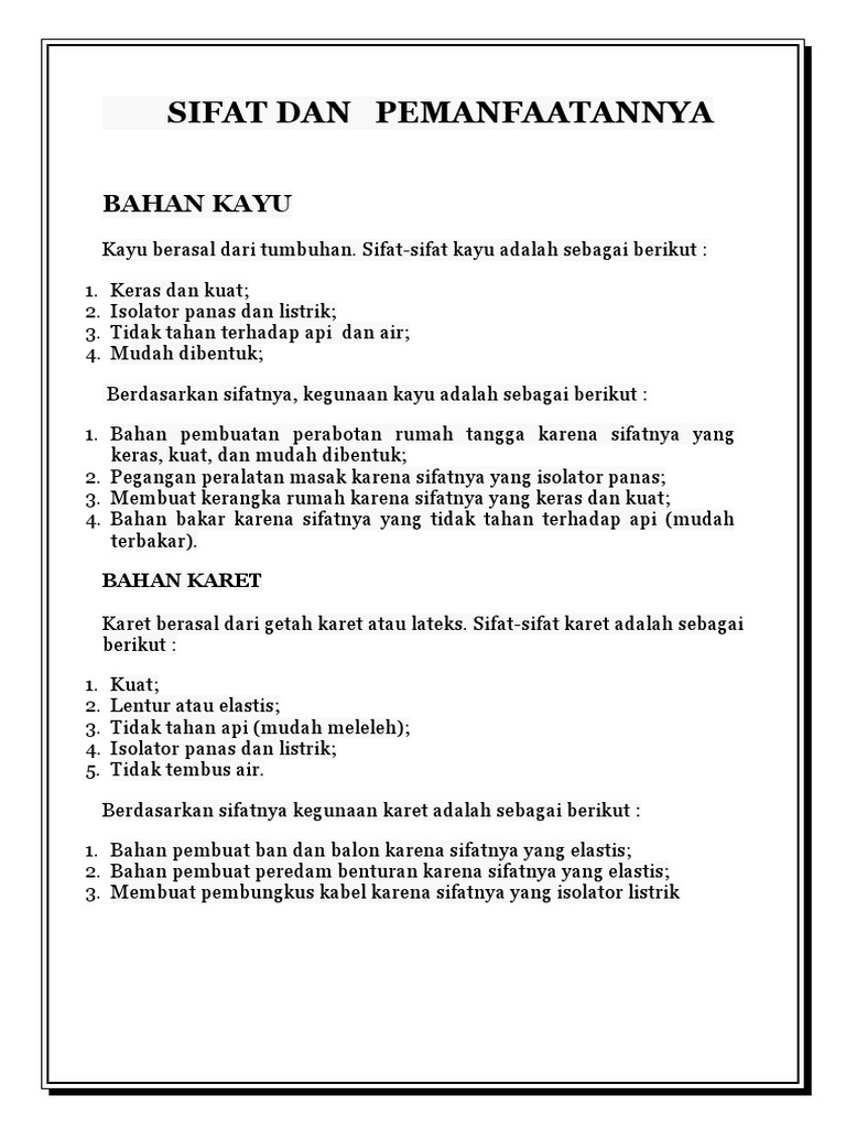 Sifat Bahan Dan Pemanfaatannya Dalam Kehidupannnya Sehari Hari
