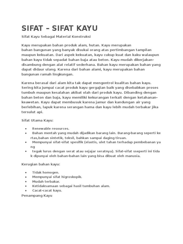 Sifat bahan kayu. Sifat kayu sebagai material konstruksi kayu merupakan bahan produk alam hutan. Kayu dikatakan berserat halus jika arah sel sel kayunya sejajar dengan sumbu batang. Jika dijabarkan maka kayu akan punya sifat seperti ini squad. Pada umumnya kayu mudah dibelah sepanjang jari jari atau arah radial daripada arah tangensial.