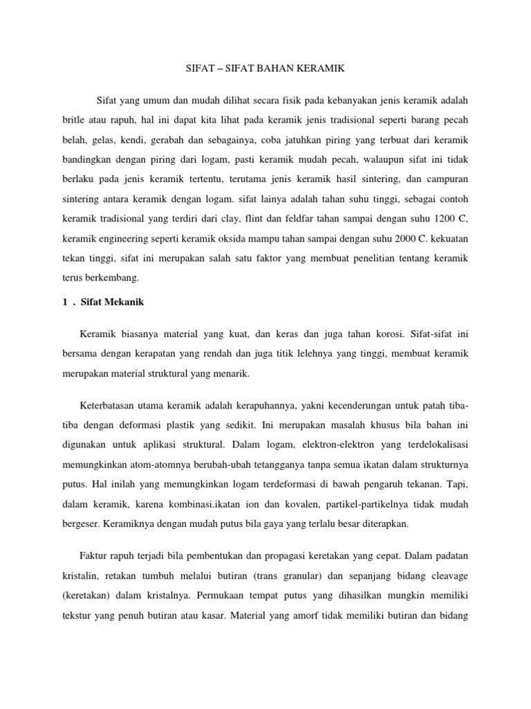 Sifat Sifat Bahan Keramik Ilmu Bahan