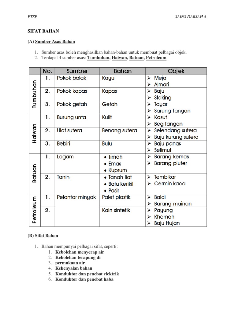 Nota Sains Tahun 4 Unit 7 Sifat Bahan Chang Tun Kuet