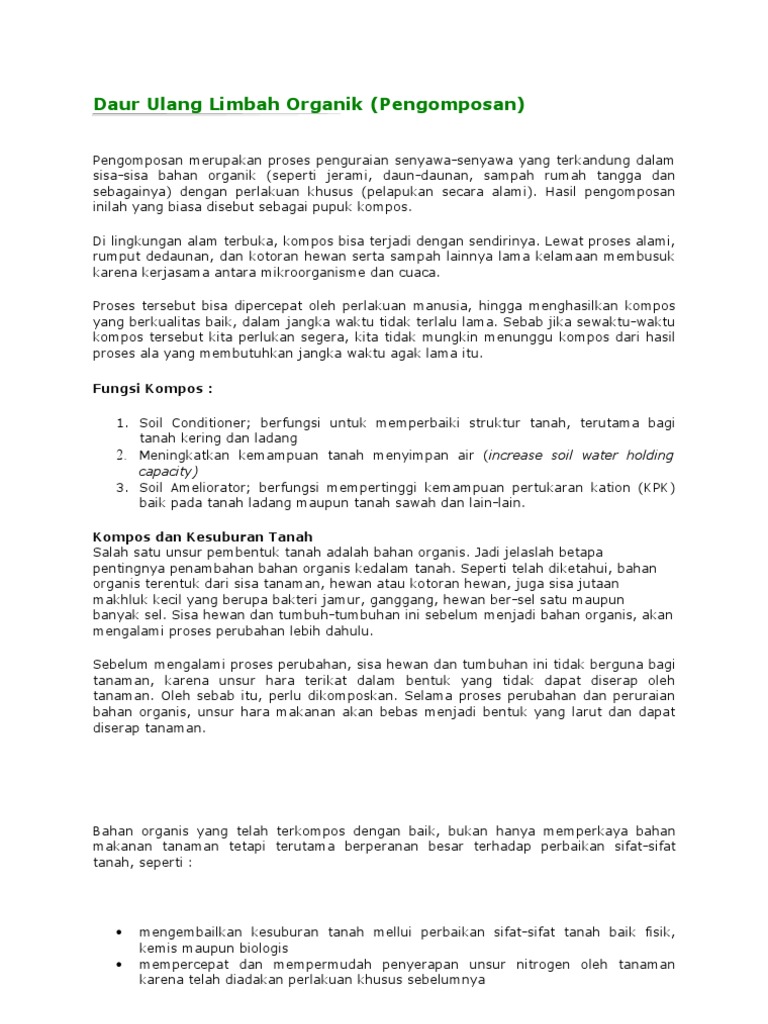 Limbah Organik Pengertian Daur Ulang Cara Dan Contoh