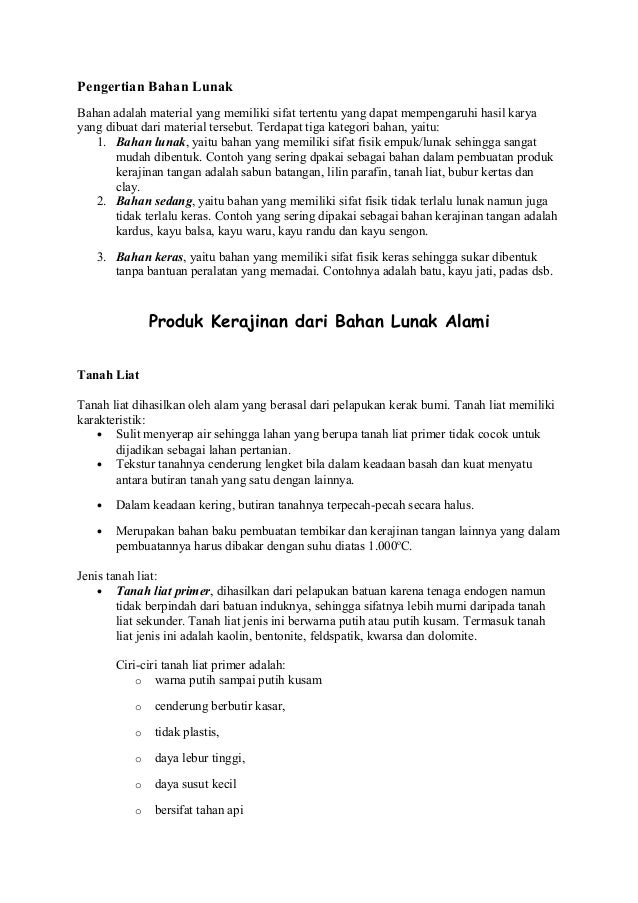 Contoh Produk Kerajinan Dari Bahan Lunak Buatan Dan Alami