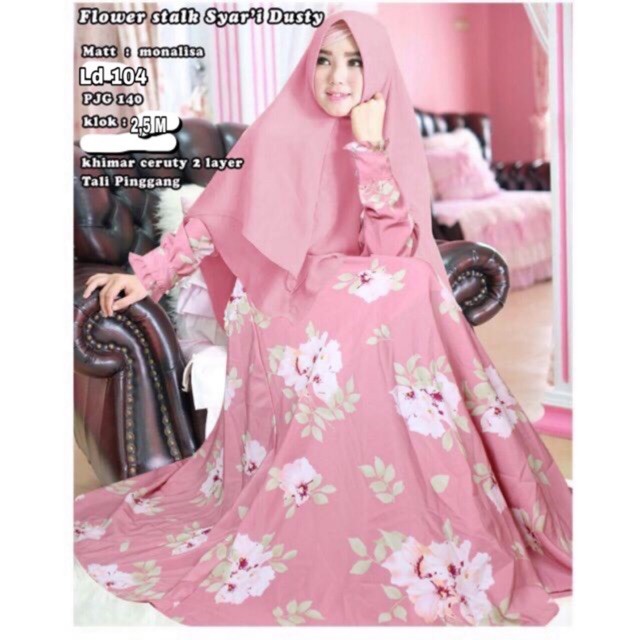 Gamis Syari Ukuran L Bahan Monalisa Wolfis Flower Stalk Dusty