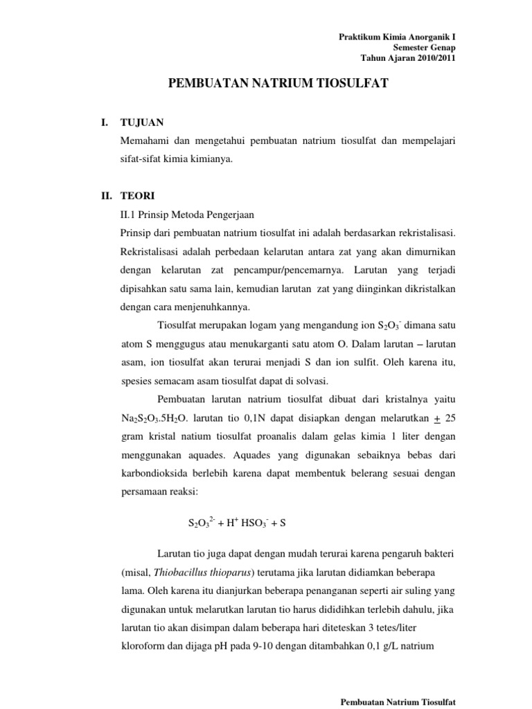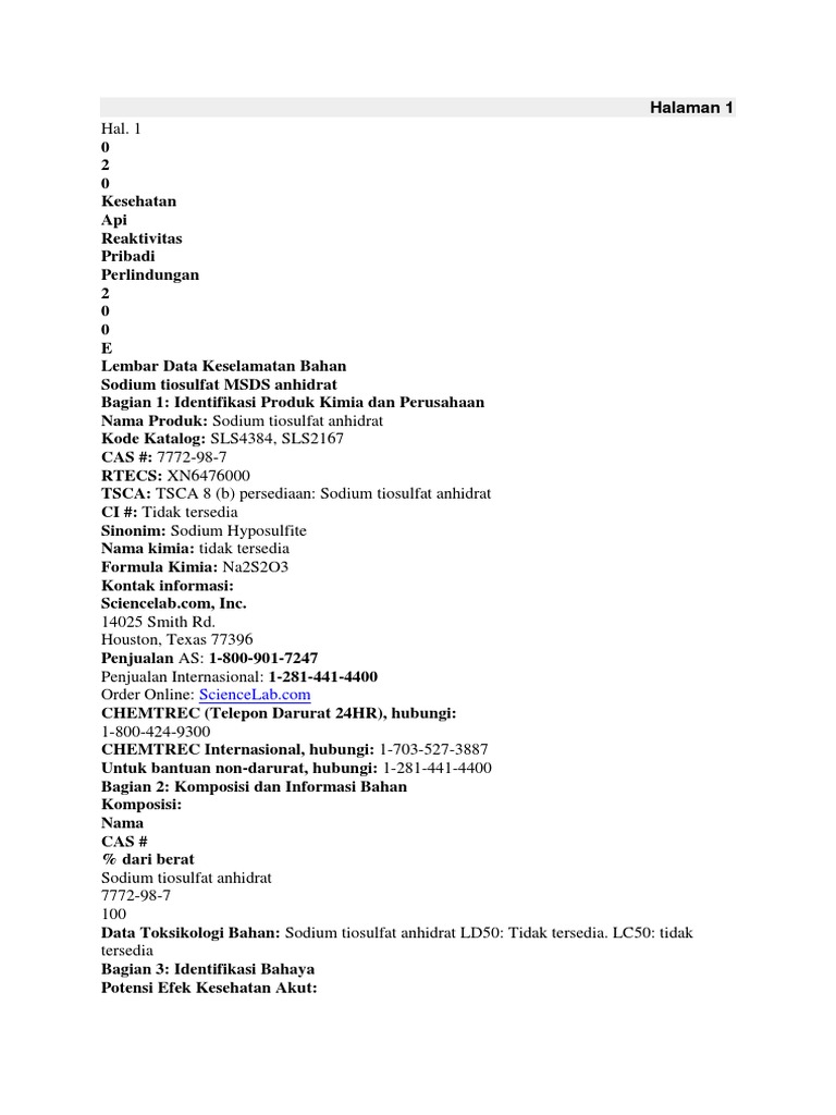 Pengenalan Bahan Kimia Natrium Thiosulfat