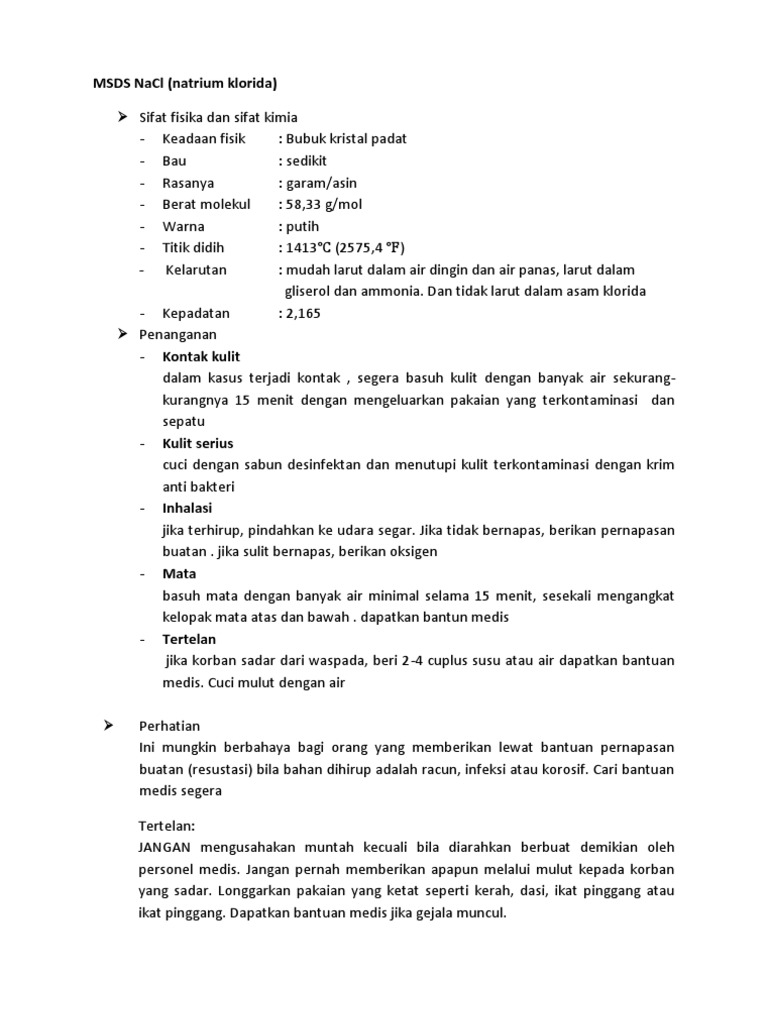 Sifat Sumber Dan Reaksi Natrium Klorida Garam Meja Dapur