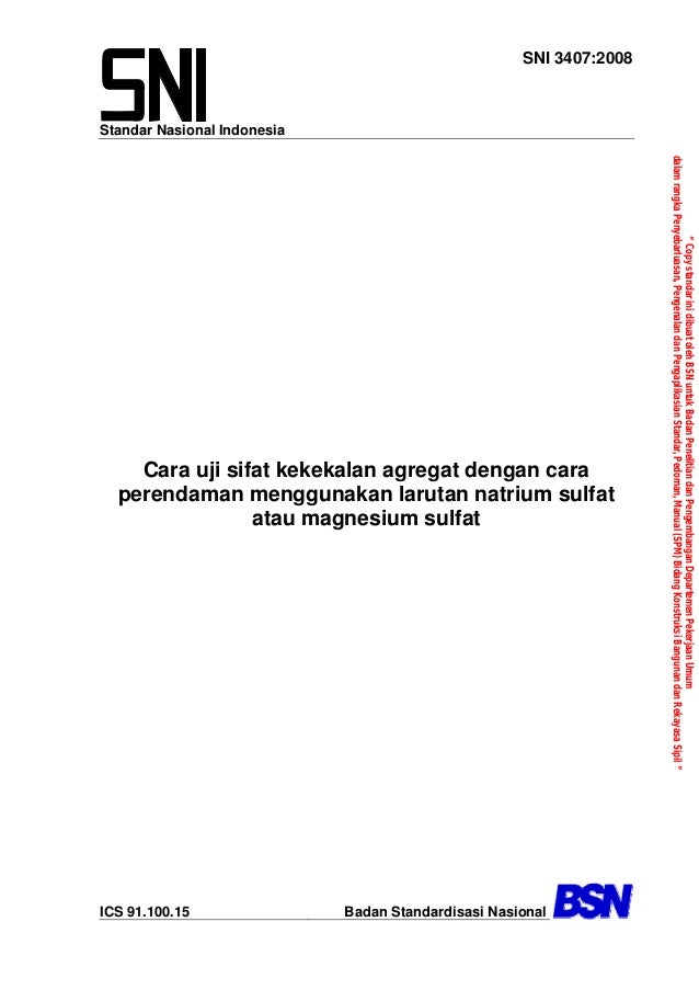 Sni 3407 2008 Cara Uji Sifat Kekekalan Agregat Dengan Cara Perendaman